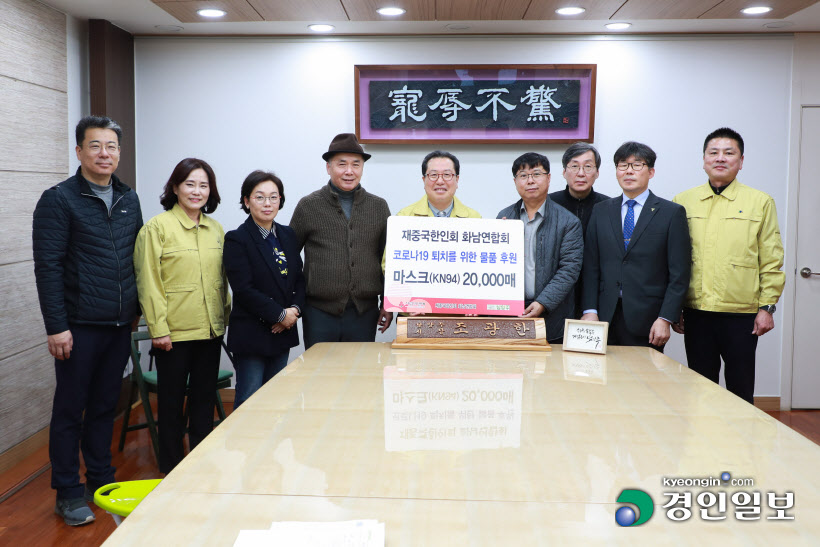 중국 화남지역에 거주 중인 재외국민들의 상공회 연합회인 재중국한인회 화남연합회(명예회장·손종수)는 19일 남양주시장 집무실에서 코로나19 극복을 위한 마스크 2만매를 경기사회복지공동모금회에 전달했다.