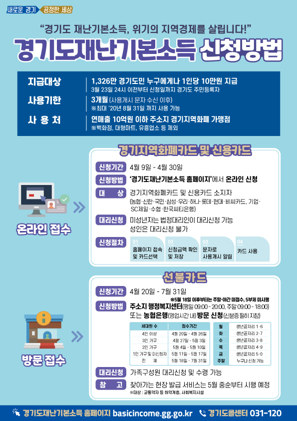 재난기본소득 신청방법 안내 페이지 정보 작성자 최고관리자 댓글 0건 조회 1,051회 작성일 20-04-08 15:33 본문 경기도재난기본소득과 신청방법을 안내합니다. 목록 이전글 2020 남양주시 장애인 생활체육지원 사업 공모 다음글 새로운 경기 제안 공모 2020, 아이디어 공모전 안내 댓글목록 댓글목록 등록된 댓글이 없습니다.